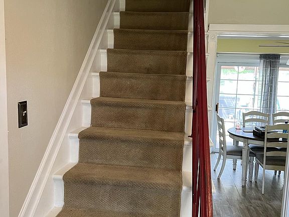 OFFER DEALINE AT 5PM ON FRIDAY 4/21/23. Welcome to this 4 bedroom home. Fresh paint on the first floor and a welcoming living room that is open to the eat in kitchen. Stainless steel appliances, and plenty of counter / cabinet space. There is also a formal dining room on this level off the kitchen. A utility room adjacent to the kitchen has a full size side by side washer / dryer and this leads to a 1 car garage. The driveway has plenty of space for parking cars too. The upstairs has 4 bedrooms and 2 bathrooms. The master bedroom furniture conveys as does the corner hutch in the kitchen (see disclosures). There is a patio out back that overlooks a large fenced in yard.