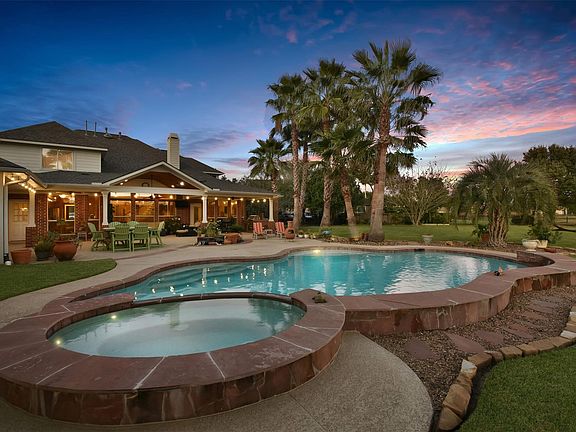 BEE in LOVE!! Rare Opportunity to live on a 1 acre CDS lot in Cypress Creek Ranch. Prime location on the lake with an amazing view of the Blackhorse Ranch Golf Course. Imagine morning coffee with a beautiful sunrise or take the edge off with a glass of wine in the evening while soaking in the hot tub as you enjoy the serene view. Entertain with friends splashing in your fabulous pool with an outdoor bath nearby. Outdoor covered patio & summer kitchen makes this outdoor space live well. Front porch leads you through a grand leaded glass door into the 2 story foyer, formal living room and dining room on right and study on left. Spiral staircase invites you into the 2 story den with built-ins and is is open to the kitchen. VIEWS are one of a kind. Kitchen features TONS of cabinets & Gas cooktop on the island for the family chef. Master suite is SWEET. 4 bedrooms up, 3 full baths. 3 car garage with extension to fit boat, Carport. Premium lot. Low Tax Rate. Never flooded.