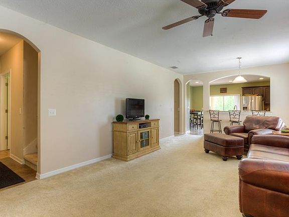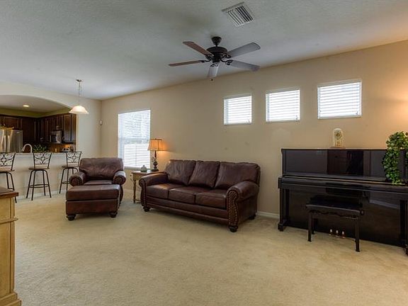 CONSERVATION ON 3 SIDES. This is a great home and yard for kiddos. Like new and Stacked stone on the front, Large side yard with hill to "slip and slide". Extra room to run and play! Sidewalks for nice walks in the evening. 4 big bedrooms, bonus room upstairs for family fun! Master Suite is downstairs for privacy. Freshly painted, the Large living & dining combo leads into the huge family style kitchen with granite and stainless, tile floors and tile back-splash, breakfast bar and cafe nook, then out to the lanai and open patio with conservation surroundings. You can have a fire-pit. From every bedroom window upstairs look down on conservation views. Slightly over-sized garage is 21''x21'' with door opener. Low quarterly $187 HOA, no CDD and low Pasco taxes. Priced right, this is truly a unique property and a must see! Hurry to see this one! Special financing available: At $200,000 with 3% down, 30 year fixed, you must bring $11,991 to closing and your total mortgage payment will be $1343. this is an approximated example. Financing is subject to buyers income and credit.