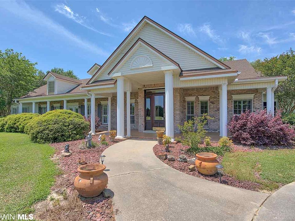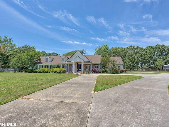 Beautifully landscaped 4 bedroom 2 bath house on 5 acres of land and close to Perdido Bay and beaches. Very large kitchen with thermador stainless convection oven with 30" microwave, stainless steel Kenmore Elite Pro Series dual fuel double oven, Thermador Pro Series hood with stainless filters and heat lamps (roof-mounted exhaust fan unit). Stainless Dual Bosch dishwashers, KitchenAid stainless Ice maker and Insinkerator disposal, dual stainless sinks in island, dual bowl enamel deep kitchen sink and water post filtration system at all sinks. Kenmore side-by-side refrigerator. There is also a very large pantry with cabinets, another refrigerator, sink, and microwave. Third bedroom is currently being used as the Master closet but it can easily be converted back to a bedroom. The fourth bedroom is a bonus room. Three car garage is air conditioned (not heated), has 220-240v power, tile floor, hurricane rated garage doors, finished (dry walled) and insulated. Roof was replaced in 2008, galvalume four-foot panels with architectural pattern (all metal) and hail proof. Entire roof deck 5/8" T&G plywood with Grace Ice and Water Shield underlayment which adhered to roof deck. HVAC: all units (heat pumps) new since 2009, main house American Standard is one-year Old, main house has four zones and all units professionally serviced twice each year. All house thermostats are digital and connected to internet so they can be controlled from any smartphone device including relative humidity from any where there is internet service. Ominus metal building hurricane hardened for car storage, gym, workshop. Tile floor, room for 45" RV, industrial lighting, electric hookup for generator and RV. Exterior painted in 2017. RV door is 16.5' tall. Seller will sell additional 7 acres behind this home for $25k now that's a bargain.
