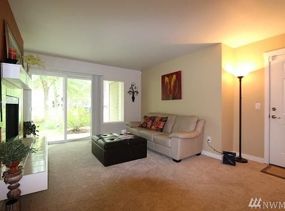 At the heart of Harbour Pointe, Mukilteo, and in desirable golf and views community. Near shops, restaurants, library, fitness centers, and easy access to freeways & Boeing. Updated & move-in ready ground-floor condo offers granite counter, cozy wood burning FP, brand new carpet, SS appliances, full size WD. Private storage off the patio. Walking distance to award-winning Mukilteo Schools. Exceptional: Comes w/garage parking w/opener/remote controls & key-less entry. Hurry, this one is a gem!!