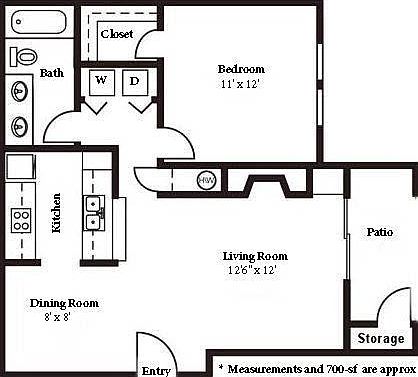 - Total interior livable area: 700 sqft