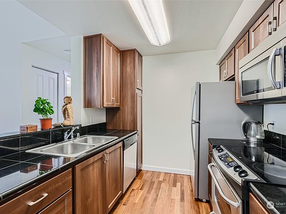 Welcome to Front9 Condominiums! Located near the Harbour Pointe Golf Club. This top floor condo overlooks a beautiful magnolia tree, and the courtyard. You can enjoy your own washer and dryer and updated cabinets in the kitchen! Common areas include a gym, indoor and outdoor pools/hot tub, rec room, sauna, basketball court, and BBQ courtyard area perfect for gatherings. Low HOA dues cover water, sewer, and garbage. This location is near beautiful waterfronts perfect for hiking, biking, & relaxing. Minutes from Boeing, Paine Field, shopping, dining, museums and historical sites that you are sure to love. Don’t miss out on this fantastic opportunity to live in this amazing community in one of Mukilteo’s most desirable locations!