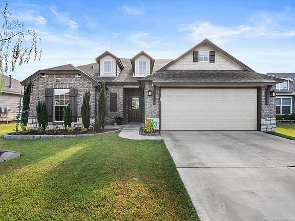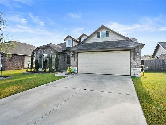 Popular Single-story Adeline plan. Come see the conveniently split plan w/ quiet spaces for children, in-laws, or working from home, Kitchen - granite, stainless appliances, under mount sink. Large back yard with partially covered patio. Highly rated Owasso Schools, notably Morrow Elementary built in 2019. Neighborhood pool and park