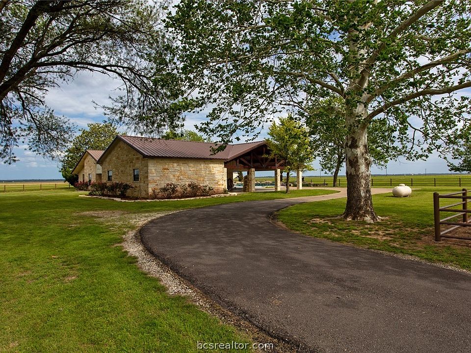 Looking for a place in the country where you can see the stars but have all the conveniences of being only minutes to Bryan/College Station amenities? This one will definitely check all your boxes! The house was completely redone in 2011 and features plantation shutters, wood flooring, crown molding throughout, granite counter tops and an open concept living and kitchen area. Your kitchen features plenty of space to entertain, custom cabinets with pull out drawers, plenty of storage and an eat in island. Double sinks in the bathrooms with granite counter tops and the primary suite has a claw foot tub and extra large shower! Get lost in this oversized laundry room with space for your extra refrigerator. Relax in your backyard oasis featuring an outdoor living space and a salt water pool installed in 2010. The property features a metal roof, barn/storage shed with potential for horse stalls. Beautiful electric gate and pipe fencing, 4 strand wire, 12 acres of Tifton 85. The garage has an oversized porte cochere! Foam insulation was installed in 2023. Plenty of space for entertaining. The Texas A&M RELLIS Campus is less than 10 minutes away! Welcome Home!