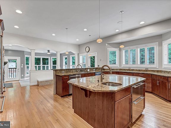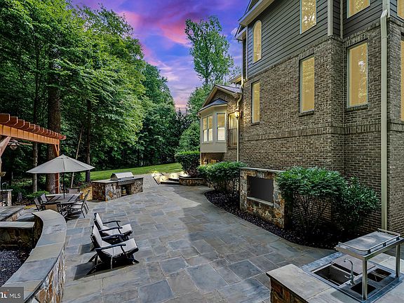 Custom built home in Castle Branch with $110K in upgrades, 5 bedrooms, 4.5 bathroom and 7,750 finished square feet over three levels. Sited on a premium 5-acres this premium lot has a beautiful park-like setting and extensive custom patio. Entertain in style in the welcoming 2 story foyer, formal living room, dining room with French doors leading to the veranda and a butler’s pantry with a wine fridge. Chef’s kitchen equipped with a Viking 6 burner stove, a Viking fridge/freezer, a Miele cappuccino machine, a Sub Zero double beverage fridge, a Viking warming oven, 2 new dishwashers, and a double oven. Breakfast room with built-in banquette seating and solarium with a double-sided fireplace. Two story family room with coffered ceiling, soaring windows and a fireplace. A private home office, half bath, laundry room with cabinets and a sink, back staircase and secondary entrance with dutch door round out the main level. Luxurious owner’s suite with a sitting room, tray ceiling, dual walk-in closets with laundry and spa-like en-suite with walk-in shower and soaking tub. Three additional bedrooms on the upper level, all with en suite access to a full bath. The finished walkout basement includes a recreation room with travertine floors, wet bar, marble surround fireplace, play area, custom-built subterranean wine cellar and a lower-level guest suite with a private en-suite bathroom. A true outdoor oasis with a grand stone fireplace, Pennsylvania flagstone hardscape entertaining area, an oversized outdoor Viking grill, a Viking beverage center, an outdoor TV area and a hot tub platform (wired, plumbed and ready to go). The 3-car oversized garage has commercial-grade flooring and easy access to a large pantry and mudroom/laundry room off the kitchen. Great Fairfax location close to parks, shops, restaurants and within the top rated Willow Springs/Katherine Johnson/Fairfax Pyramid.