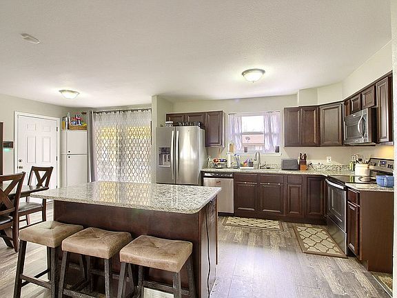 NEW PRICE! Great 3 bedroom, 2.5 bathroom split level home with an open floor plan and ample natural lighting. There is a 3D virtual tour for this property- don't forget to check it out! Home features an open kitchen with granite countertops, stainless steel appliances, kitchen island, dining room and laminate hardwood floors. Lower level living room with decorative stone gas fireplace, office nook and 1/2 bathroom. Upstairs boasts a master bedroom with en suite 3/4 bathroom and two additional bedrooms. Finished and spacious basement features a large great room or family room with new carpet and new vinyl flooring. New roof and gutters! Corner lot with large backyard and covered patio. Attached 1 car garage and driveway parking. Home is centrally located to DIA, Downtown Denver, shopping at Stapleton/Northfield and easy access to I-70. You don't want to miss this amazing home in Montbello!