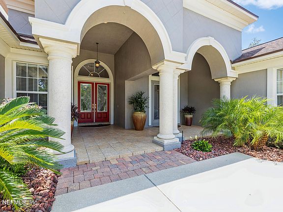 An elegant luxurious and upgraded custom built concrete block pool home by Arthur Rutenberg, offering unparalleled craftsmanship & exceptional Amenities! This Italian inspired design home is truly remarkable inside and out with 4 bedroom, 4 Full bath w/3,859 sq-ft of living space resting on a high & dry corner lot of almost 0.75 acres. Richly-appointed spaces include large gathering areas, a bright professional-grade gourmet kitchen w/island/wine rack, maple wood cabinets, Corian counter tops, crown molding, $10K custom built cherry wood/marble breakfast table, spectacular separate dining room w/$15K custom built dining room set, and an enormous Owner's Suite, & custom windows provide plenty of natural lighting! New Roof 2017, NEW W/H 2018, New HVAC 2020, FRESH EXTERIOR PAINT June 2023! The expansive backyard includes a sparkling pool and a comfortable spacious decking all in private, verdant surroundings. A covered parking space for your boat/RV and a free standing workshop with lifts for your classic cars & more. You'll appreciate the short drive to downtown, JAX airport, shopping center, access to Interstate 295, and numerous parks and preserves.