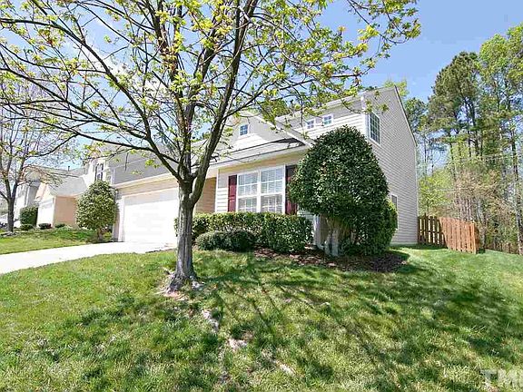 Move-In Ready & convenient to RDU, RTP & I540! New HVAC system 2017. Fully fenced flat backyard with large patio & protected wooded buffer. Spacious & open floor plan. Beautiful Bamboo flooring 1st floor. Formal living/dining rm. Huge family rm w/French door to rear patio. Bright kitchen has breakfast bar, pantry & pass thru window to dining area. Master suite has walk-in closet, garden tub, sep. shower & sink w/vanity area. Large secondary bedrooms. Pull down attic floored for extra storage.