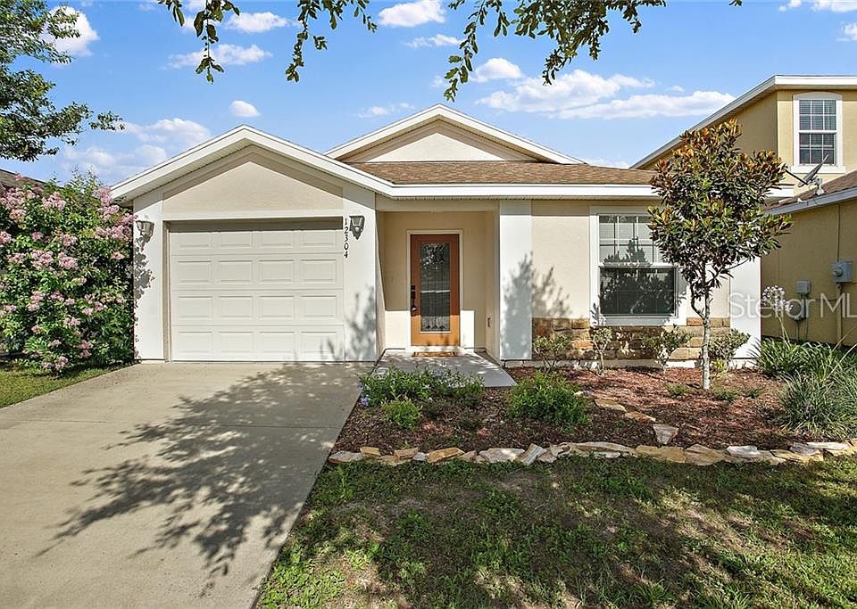 GREAT LOCATION.. MINUTES TO THE VILLAGES! This roomy 3 bedroom 2 bathroom home is a perfect for a new family or snow bird getaway! This spacious, open floor plan offers a living/dining room combo with tile floors and vaulted ceilings. Kitchen with recessed lighting, stunning granite counters and a large snack bar overlooking the dining/living area. Master suite has a walk in closet. Master bathroom with a walk in shower and granite counters with dual sinks. Bedrooms 2 and 3 share a guest bathroom with granite counters and a tub/shower combo. The covered back patio is perfect for BBQ's with family and friends and has plenty of privacy with a fenced backyard. This gated family friendly community offers a 5,500 sqft Clubhouse with a banquet room, kids room, fitness and aerobics room, covered lanai overlooking community pool and spa. Plus areas to cook out near the 3 acre Recreational Park where you can plan events at the Picnic Pavilions. There is also tennis, beach volleyball, basketball, children's playground and more. Close to shopping, restaurants. Dont miss this steal of a deal.... this home WONT LAST LONG!