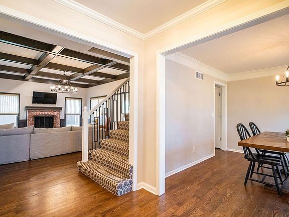 Step inside this recently remodeled exquisite home and immediately fall in love with the gorgeous coffered ceiling and wainscoting walls in the main living area with a beautiful brick fireplace to set the tone for relaxation. The stunning kitchen boasts of ample custom cabinetry, granite countertops, new stainless steel appliances with a spectacular granite island perfect for entertaining guests. Large new windows throughout to allow sunlight to stream into the home for a warm glow. Gleaming hardwood floors on main level. Very spacious formal dining room allows ample space to host holidays . Primary bedroom on the main floor is your own private oasis with a spectacular ensuite with double vanity and Quartz countertops. Dual shower heads inside the luxurious large shower allow you to relax and wash your cares away. As you enter the expansive walk-in closet with wonderful built-ins and folding table with Quartz counter top you will smile from ear to ear knowing that true organization awaits. Upstairs are 3 more spacious bedrooms, large landing, full bath and cedar lined closet for extra storage. Brand new HIGH quality Hunter Douglas blinds with remote control or smart phone access for ease of use. All new Hunter Douglas ceiling fans with lights to grace each bedroom. New hanging light in main living area. The large finished basement is set up perfectly for rec room, theater room, play room, the possibilities are endless. HUGE storage areas are an organizer's delight. Main storage area could easily be finished into another room. New deck for grilling or simply sipping a cup of coffee in the morning. Large fenced yard with plenty of space. This elegant home is right across from the grade school and a block from the high school located in the highly desired Blue Valley school district. Conveniently located near shopping, restaurants, schools and easy highway access. This home is the perfect mix of comfort and elegance and ready for you!