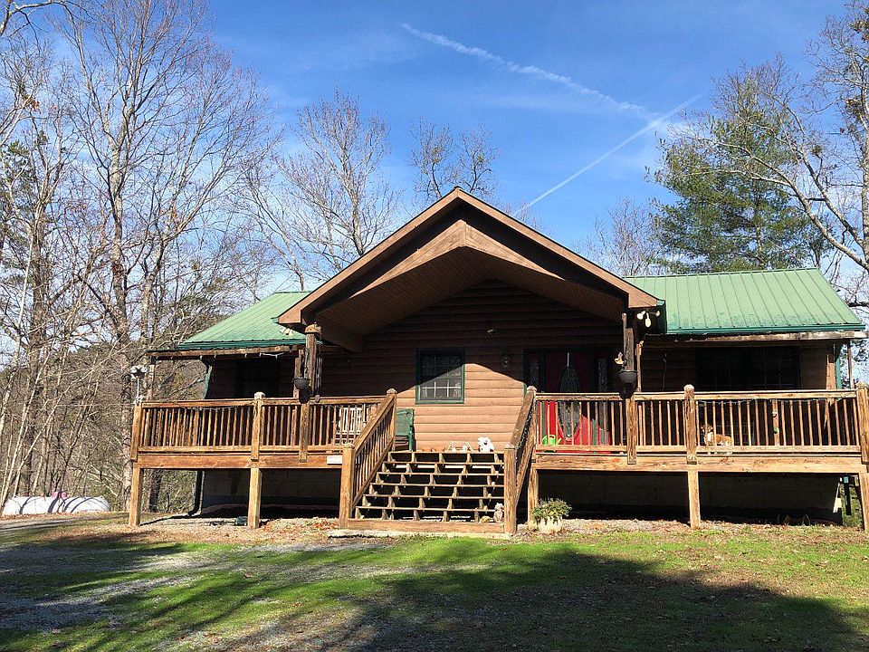 BACK ON THE MARKET! Check out this deal before it gets gone! Charming log sided cabin situated on 15.51 unrestricted acres. This 2BR/2.5BA home features a large country kitchen with bartop counters for extra dining, a separate/open dining area, open living area with windows galore for natural light and enjoying mountain views. There's also a Mud room style laundry area with a guest half bath. The Main level master suite has it's own deck entry. Terrace level features a living area/den with a wood stove access and lots of windows, Full bath and guest bedroom with a nursery room area, partially unfinished area which could be made into another bedroom/bonus room. Patio access to the outdoor entertaining area which features a nice sitting area and hot tub. Enjoy the large back deck and covered front porch, perfect for hammocks, while listening to the rushing creek below! Close to Carters Lake and the Cohutta Mountains.