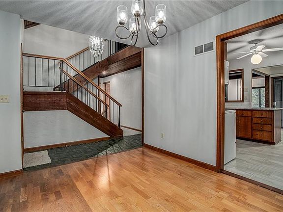Custom built home with fresh carpet & paint throughout. Beautifully tiled kitchen, laundry & half bath with updated/upgraded granite kitchen counters. Lovely tongue & groove wood ceilings throughout the entry & living rooms. Master bedroom, second bedroom/office on first floor with three additional bedrooms upstairs. Large finished walkout basement has a kitchenette, family room and extra bedroom for multigenerational living. Enjoy the gorgeous wooded lot from the deck or the view from one of the slider doors.