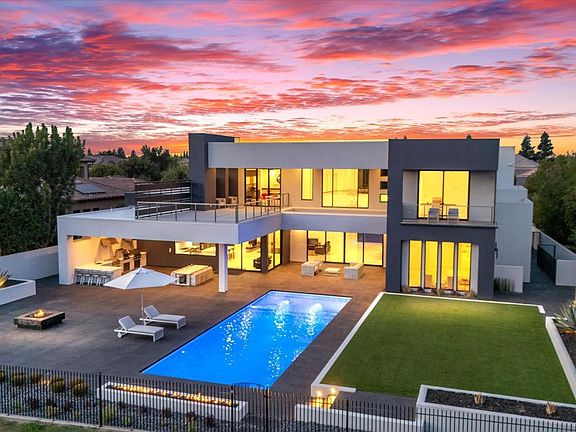 Immerse yourself in the serene luxury of this modern home located in the prestigious gated community of Grand Island in Seven Oaks w/ unparalleled golf course views. This residence is situated behind gates for additional privacy & boasts a 4car garage. A grand entry, floating staircase, a bridge/catwalk on 2nd level, gourmet chef's kitchen w/ Thermador appliances w/ built in refrigerators & two 18'' wine refrigerators & custom Italian cabinets throughout. The primary suite is located on the 1st floor & boasts his/her closets, primary suite bath with his/her floating vanities, Dual head shower w/ steam shower & floating bathtub. 3 additional bedrooms, 2 w/ en suites & all have custom California Closets. Game room is located on the 2nd level w/ a panoramic bi-fold door w/ spacious deck. Each level has a powder bath for guests. The outdoor oasis showcases ceiling fans & heaters on all patios, outdoor kitchen, pool w/ fiber optic lighting & bubbles, fire features in landscape & firepit.