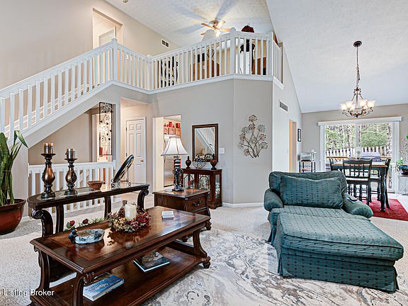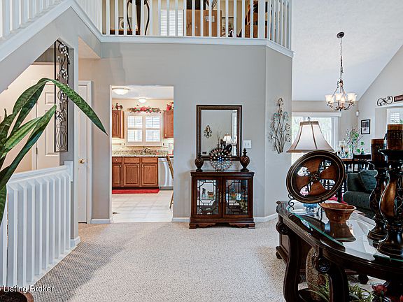 Welcome home to 12305 Dominion Way located in the beautiful Woods of Fox Creek. This home is tucked away at the end of a quiet cul-de-sac, bordering Blackacre Nature Preserve, for nature and tranquility at its finest. An inviting covered front porch greets as you arrive home, and is the perfect place to relax outdoors. The spacious great room boasts soaring ceilings and a lovely gas fireplace. The adjoining dining space has a large bay window, with access to the rear deck and backyard. The eat-in-kitchen is equipped with stainless appliances, granite countertops, tile backsplash, and a pantry. Spacious primary bedroom with walk-in closet and private bath featuring a double bowl vanity and walk-in shower. Convenient first floor laundry with access to the garage. Pretty white plantation shutters in the all windows throughout the first floor. Upstairs you'll find a large loft area perfect for an office/study, or lounge area, and two nice sized bedrooms, both with their own walk-in closets. Located downstairs is a comfortable family room, a great space to watch the big game or play a round or two on your billiard table. Plenty of storage space in the unfinished area to accommodate all your sports equipment and seasonal decorations. Unwind after a long on your expansive deck with an inviting hot tub and fully fenced rear yard overlooking the trees. Enjoy walking the trails which meander through the woods surrounding the neighborhood. This home is situated in the most convenient area near shopping, restaurants, expressways, and Bluegrass Industrial Park. Come take a look at this wonderful home in this amazing neighborhood and make it your own!