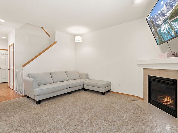 Welcome to this spacious and impeccably maintained townhome, offering convenience and comfort in a prime location close to I-5 and shopping. Step inside to be greeted by soaring ceilings and beautiful hardwood floors, main floor features powder room, a cozy living room with a gas fireplace, a dining room with a charming coffered ceiling and kitchen with extra tall upper cabinets. Upstairs, you'll find a generous primary bedroom with vaulted ceilings, a walk-in closet, and a luxurious 5-piece bath, providing a peaceful retreat. Additionally, there are two more bedrooms, a full bath, laundry, and linen closet. Enjoy the privacy of your own fully fenced backyard, complete with a nice sized patio and pavers. Come see this one for yourself!
