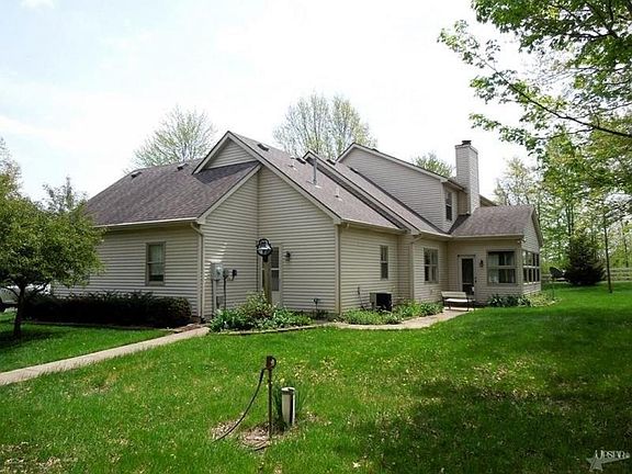Attention nature lovers--this ones for you! Flower beds abound with perennials of all colors, sizes, and varieties. The large pond is stocked with blue gill and bass to catch from your dock or small boat (included). Relax on the porch swing of the shop and enjoy the beauty of the decorative pool with spraying fountain. The picnic area has a fire pit--perfect for a wiener roast. Two bridges, white fences, a large garden area and a woods all make this a nature lovers dream come true. 4.655 acres, which includes a 20 x 26 shop, heated with gas, has overhead door, window air conditioner plus 100 amp service with 220 electric. The 2556 sq ft home is built with 2x6 construction and has a 18x10 FOUR season room. The kitchen, with all appliances has breakfast bar area and is open to the great room with fireplace. Master on main, master bath has garden tub, separate shower, double sinks, , formal dining, separate living room, upstairs has a landing with additional bedrooms plus a walk in