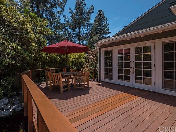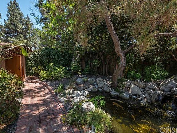 Magical private estate in the desired footbridge area of Studio City with Zen feel. Enter the compound through beautiful gates and walk up to your deck overlooking the Koi pond with a mesmerizing waterfall. Almost every room has enticing outdoor space to be enjoyed. This California Ranch style home has a great room with fireplaces and vaulted wood beamed ceiling. Large dining room with French doors opening to the outside deck. Adjoining den has a fireplace, skylights, French doors that open to another outdoor sitting area. Large master with period vaulted wood beamed ceiling and fireplace. Very open and bright interior with large windows, French doors, and split Dutch doors that allow you to enjoy the lush landscaping. Bright kitchen has top end JennAire and Miele appliances. Free standing studio perfect for yoga, music studio, or private office space. Walk across the Laurelgrove footbridge for your morning coffee, yoga, and in the evening no need to drive to dinner and entertainment in this pedestrian friendly area. Nearby schools are the desirable Carpenter Community Charter and Walter Reed Middle School. Close to studios and Studio City Farmers Market.
