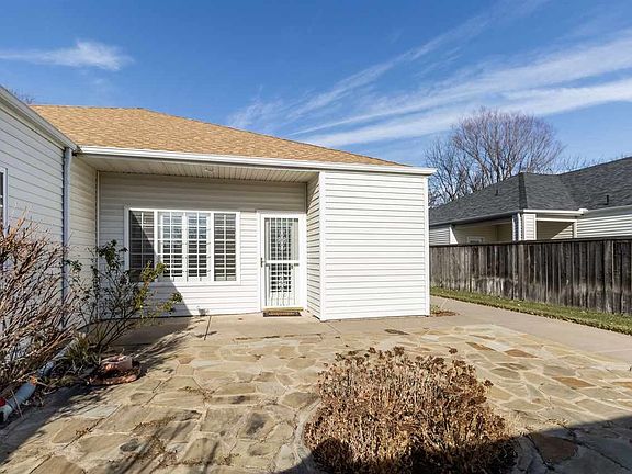 Low maintenance living at its finest in this move-in ready patio home complete with private courtyard with stone patio, great open floor plan for easy entertaining, lovely living room with carpeting, fireplace, recessed lighting, built-in shelving, and built-in speakers, and formal dining room with recessed lighting, sliding glass door, and neutral decor. Enjoy your morning cup of coffee out in this fabulous sun room with lots of windows, sliding glass door, and new carpeting. Cooking will be a pleasure in this gorgeous kitchen with oversized granite breakfast bar, tile backsplash, recessed lighting, fully appliance, and tile flooring. The storm room is right off the kitchen and features carpeting and steel door and a main floor laundry/storage room. Spend peaceful nights in this massive master suite with carpeting, large windows, plantation shutters, recessed lighting, two walk-in closets, and private bathroom with tile flooring, wheelchair accessible tile shower, and linen closet. This fabulous home also features an additional guest bedroom with private bathroom, plantation shutters, and door to the courtyard. Hurry, this one will not last long!