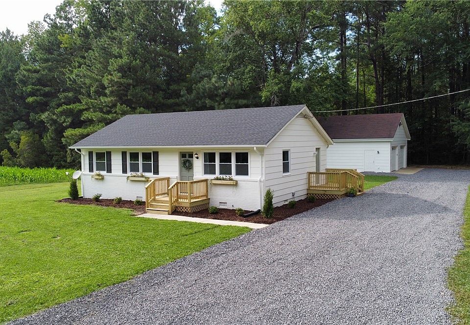 BACK NO THE MARKET AT NO FAULT TO THE SELLER AND APPRAISED! Welcome home to the desirable Prince George County! Convenient to I-95 and I-295, this home in it's private rural setting is only 10 minutes to Colonial Heights and 30 minutes to Richmond. Fully remodeled to include a new roof, new windows, painted exterior, refinished hardwood floors, new HVAC, landscaping, and freshly painted interior, as well as a whole-house water filter. The detached two car garage with new gravel driveway access is every man's dream. Seller is offering a one year home warranty with purchase! Offers will be reviewed as they are received. Detached garage sold as-is. Sellers have been told the yellow house nearby is being torn down and that area will be crop field.