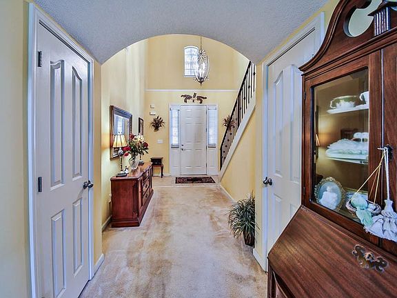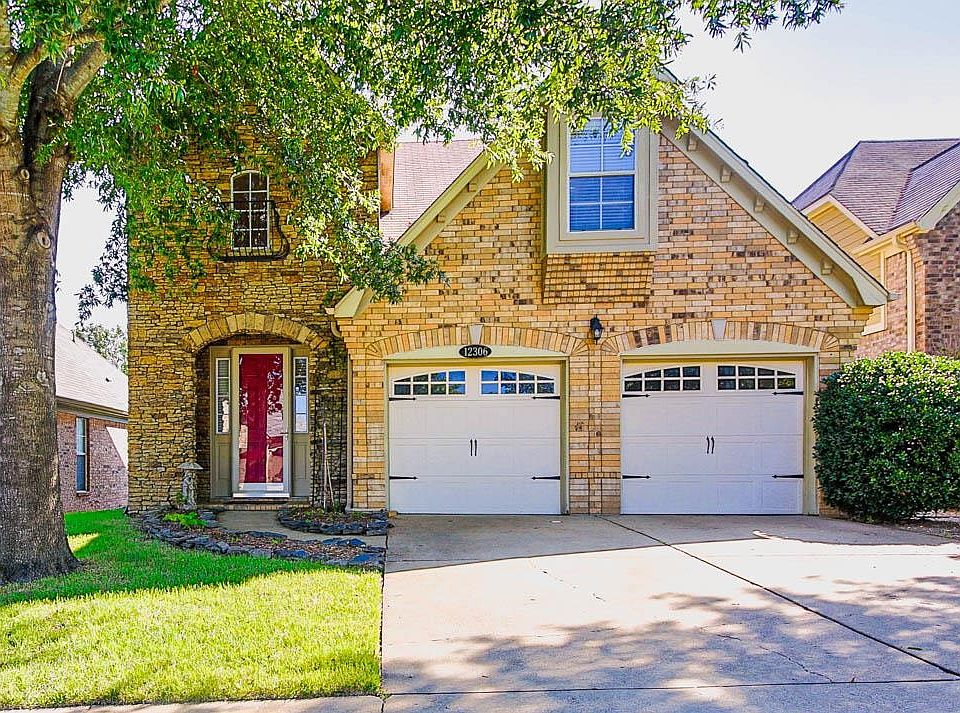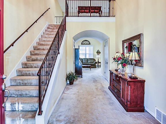 This stunning property features a stone front and carriage style garage that add charm & elegance. As you enter, you will be amazed by the grand 2 story foyer with wrought iron details on the stairs. The main floor includes an open concept living space and half bath for guests. The primary suite located off the living room has a walk-in closet & full bath with double vanity, jetted tub, & separate shower. Upstairs, you will find 3 additional bedrooms & second full bath.