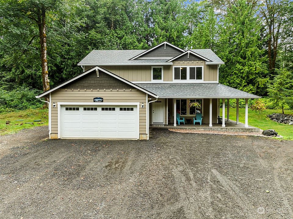Discover this charming property that perfectly blends comfort & seclusion. Set on a just shy 6-acre lot, this home offers spacious living areas & modern amenities in a serene setting W/a private stream—ideal for a peaceful retreat. Bright living room features plush carpet for added comfort! Updated kitchen offers high-definition laminate counters, SS appliances, & dining space. Convenient main-level primary suite features walk-in closet & ¾ bath. 3 additional guest rooms, bonus room, & full bath on second floor! Relaxing yard W/mature landscaping, garden beds, & covered front & back patio W/stamped concrete! Hybrid WH, private well, 2 car garage, & room for RV parking! Enjoy the blend of modern amenities & natural beauty in your new home!