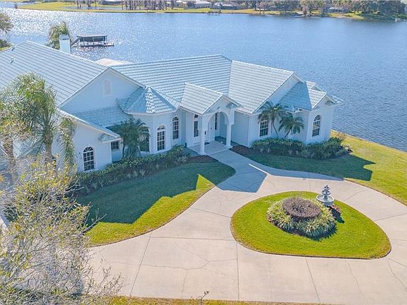 BACK ON MARKET due to buyer not being able to obtain financing. Home is now LISTED AT APPRAISED VALUE. Home has been fully inspected and sellers have made sure it is 100% ready for the new owners! Bring your jet ski or boat and get ready to enjoy Florida lakeside living at its finest. This one-story, gated, custom-built home is situated on a 3.17 acre lot on a water-ski/motorized sports lake in the heart of Keystone. The home features: ceilings up to 14', a 2000-bottle wine cellar, private tennis court, oversized bedrooms all with ensuite baths, formal dining room with built-ins, bonus room, master retreat with sitting area, two closets & separate vanity area, 40'x16' pool & heated spa under screened enclosure, sunset views from the great room's west facing windows & wooden deck by the lake. Many rooms open via sliding doors directly to the pool. The home has wood, bamboo & tile flooring & the kitchen includes a gas cooktop, new oven & microwave, stainless steel refrigerator, Eurocave wine fridge, trash compactor & granite counters. The 6th bedroom is currently an office & features wainscoting & a built-in bookshelf. The home feels very secluded as it is set back from the road by a 400-foot driveway and surrounded by water & natural conservation. This home is the perfect opportunity for the discerning buyer looking for waterfront living. Lake Breckenridge allows motorized water sports & catch-and-release fishing. A 360-DEGREE VIRTUAL TOUR & FULL PROPERTY VIDEO OF THIS HOME IS AVAILABLE.