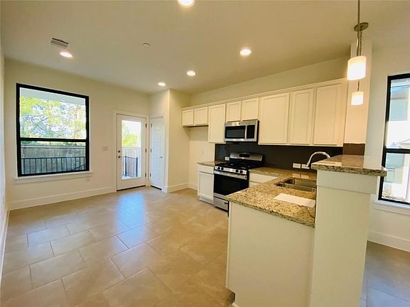 Experience the ideal mix of comfort and convenience in this chic condo, perfect for a lock-and-leave lifestyle or stay-and-play retreat! Built by Prominence Homes, the Galloway floorplan offers spacious, open-concept living with a main-floor ensuite, expertly balancing style and functionality. The main areas feature high ceilings, neutral tones, 24x12 ceramic tile flooring, recessed lighting, and large windows dressed in 2020-installed Hunter Douglas roller shades. The living room flows seamlessly into an eat-in kitchen, complete with a breakfast bar, granite countertops, stainless steel appliances, a movable island, and ample cabinetry with chrome finishes. The main-floor primary bedroom includes a tray ceiling, walk-in closet with extra shelving, and an en-suite bathroom featuring 18x18 tile flooring, a granite dual vanity, and a large walk-in shower. Upstairs, enjoy a versatile loft and two more bedrooms, plus a flexible space ideal for holiday storage, an office, or an art studio the possibilities are endless! Additional highlights include dual zone WiFi thermostat, modern 6" baseboards. Refrigerator, washer, and dryer are all included. Outside, relax in the tranquil greenspace behind the home on a covered patio. Take advantage of fantastic community amenities: five pools, a playground, tennis and basketball courts, a pavilion, and a clubhouse. This prime location is just a 10-minute drive to the Apple campus and less than 5 minutes from HEB, Lakeline Mall, and Hmart. Located near Brushy Creek Lake Park, scenic trails, the YMCA, and a golf course with social events, this condo invites an active, engaging lifestyle. No smoking allowed. Require renter insurance with $100,000 minimum liability coverage. Tenants pay for electricity / gas / water. 1 year lease minimum.