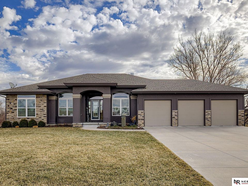 Former Model Home has 2000 FSF on main level. Luxury meets functionality on an acre lot backing trees. Spacious rooms with 11' ceilings thru-out main level. Living area open to kitchen/dining room features wood floors, floor to ceiling FP, an abundance of natural light with floor to ceiling & transom windows. Floor plan effortlessly allows you to host both large & small gatherings. Surround sound in LR, kitchen, garage & deck. Cupboard's & countertop space galore and a walk-in pantry like no other! High end finishes. Large Primary BR features walk in closet, 3 floor to ceiling windows, double sinks, walk in shower & private door to deck. SS appliance's Inc. gas stove top, warming drawer & Avantium speed cook microwave. MFU & drop zone add to practicality of daily living. Walk out from kitchen to 14 x 22 covered composite deck. Walking trail starts at back corner of property. Walk out LL & covered patio. Office could be 3rd BR. Sprinkler Sys. 8 foot garage doors. Close to Interstate