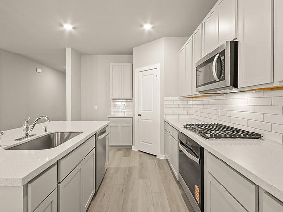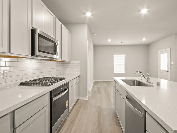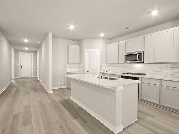 Experience luxury living in this spacious 4 bedrooms, 3 baths, and a 2-car garage, this stunning single-story design offers modern elegance and functionality. The Binsa-English Dove brick exterior, accented with Elephant Ear body paint and Greek Villa trim, creates striking curb appeal. Inside, the gourmet kitchen boasts Madison Thimble cabinetry, Omegastone Alberti countertops, and a sleek Mirado stainless steel sink. The spa-inspired primary bath features a double vanity, a separate tub, and a shower. Enjoy premium finishes, a flex room with double doors, an open-concept layout, and brick siding on the first floor—blending style, comfort, and quality craftsmanship.