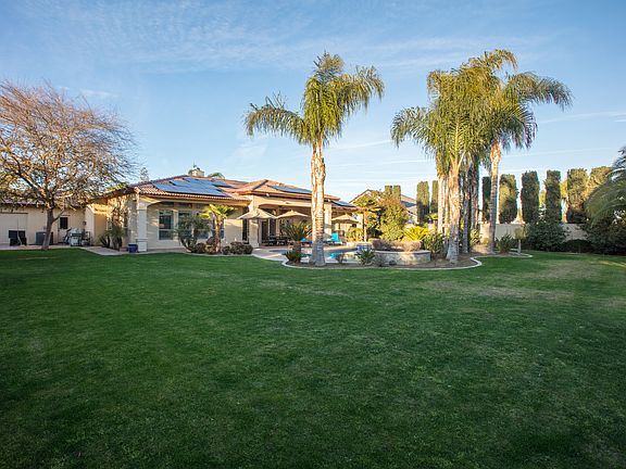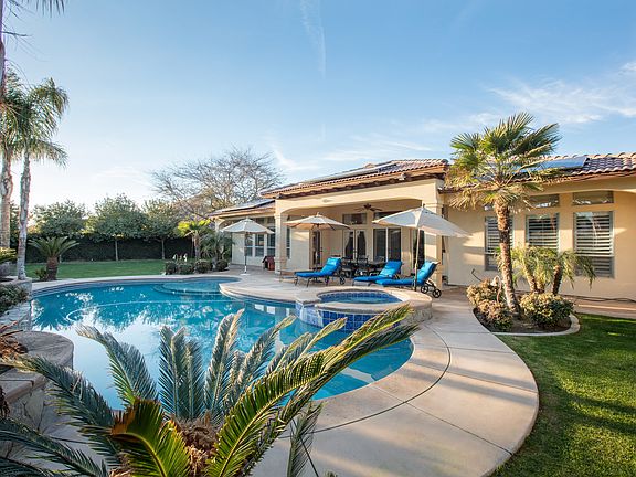 Spectacular Rod Brown custom built home located in gated Trinity at Villages of Brimhall. Owned out right 42 panel solar system. Stunning amenities and elevation. If you like to entertain this is it and is a must-see home. Courtyard with stamped concrete, fireplace. Multiple sets of French doors open to the large beautifully landscaped backyard with swimming pool that has a play pad and spa. 4 bedrooms, 3 1/2 bathrooms. Large 4 car garage (1,142sqft) with a pull through back garage door and epoxy floors. Concrete poured in backyard for a sports court or extra entertaining area. Gourmet kitchen with large island built-in refrigerator, double ovens, wine fridge and ice maker. Freshly painted, newer carpet and updated fixtures. All this on a large gated estate lot.