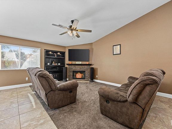 Welcome to this captivating 4-bedroom, 2-bathroom home in the heart of Northwest Bakersfield, boasting RV parking with a custom iron gate. Step inside to an open floor plan that seamlessly connects the living spaces. The great room, with its striking rock fireplace and built-in entertainment shelving, flows effortlessly into a chef's kitchen. The kitchen offers rich wood-stain cabinets, stainless steel appliances, an island with seating, and a pantryperfect for gatherings and culinary creativity. The primary suite is a private retreat, featuring durable LVP flooring, an expansive closet, and bathroom with dual sinks and counterspace. The finished garage provides even more storage solutions, ensuring everything has its place. Step outside to enjoy the large backyard, complete with a covered patio, extended concrete, and a handy storage shed. Ideal for both comfort and function, this home offers the perfect blend of modern amenities and outdoor living. Call today!
