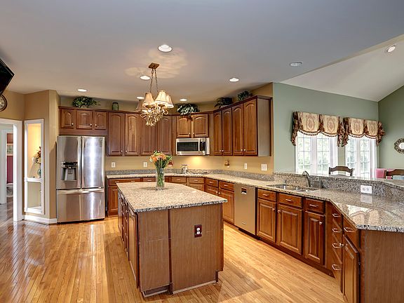 Stunning 5 bedroom, 4.5 bath colonial with 3 car garage in picturesque Fox Creek. Gourmet kitchen with stainless steel appliances, large island, breakfast bar, double wall ovens, walk in pantry and large breakfast room! Family room is adjacent to the kitchen and features vaulted ceilings and a floor to ceiling stone gas fireplace. 2nd stairway off the kitchen leads to the upper level where you'll find the owners suite with dual walk in closets, glass shower and soaking tub as well as 3 additional bedrooms and 2 additional full bathrooms. The lower level is complete with bedroom, full bath, gym, theater room and bar. Enjoy entertaining family and friends indoors or outdoors on the extensive landscaping which includes patio with fire pit and play area!