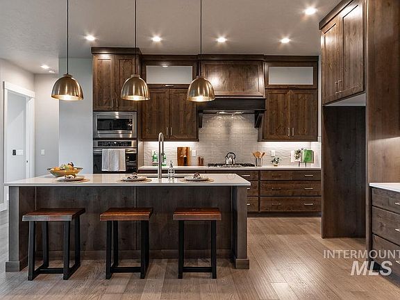 Nestled in the serene landscape of Star, Idaho, awaits this charming retreat. Step inside & be captivated by the inviting atmosphere that beckons you to call it your own. Indulge in the open kitchens modern touches featuring a double oven, 5 burner gas stove, island & large walk-in pantry with coffee bar. Thoughtful design elements that adorn this home, including a spa like primary en-suite with dual vanities & oversized shower w/ large niche, creating a space that feels both fresh and timeless. The great room boasts a custom ceiling detail, built-in cabinetry & full stone fireplace, & for functionality a 1500 sf garage includes a 51' deep RV bay with 12' x 13.5' door. With its tranquil location and convenient access to local amenities, including parks and shops, this residence offers the perfect balance of relaxation and convenience. Embrace the joy of everyday living in this wonderful abode, where every corner tells a story of warmth and hospitality, a place where dreams take root, and memories are made.
