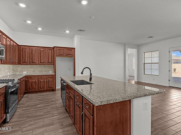 Enjoy oversized living spaces and abundant energy efficient windows in this 3-bedroom 2.5-bathroom home that boasts 10 foot ceilings, 8 foot interior doors and a 3 car garage. Designer finishes throughout make this home as beautiful as it is functional. The gourmet kitchen features an oversized island, upgraded countertops and cabinets and GE stainless steel appliances. You will love the finishes throughout the home including designer selected tile flooring, upgraded carpet and pad in all bedrooms and gorgeous backsplash in the kitchen and Owner's Bath. Find time for yourself in your huge Owner's Retreat with a large bathroom featuring a Super Shower with tile surrounds and oversized walk in closet. This home also boasts a large covered patio and oversized backyard; 2X6 CONSTRUCTION