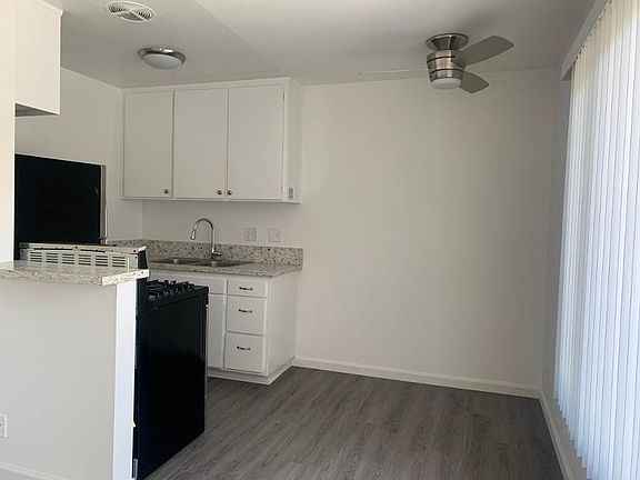 This updated upper unit comes with quartz kitchen counter tops, stainless steel gas stove, fridge, lots of cabinets, large windows, blinds, ceiling fan w/remote, plank flooring in kitchen, dining area, living room, hallway, and bathroom, shared on-site laundry room, no pets, inter-com entry, one assigned gated parking space, close to the beach, freeways and much more. MOVE IN SPECIAL $1000 Off, $500 off 2nd month & $500 off 3rd month with one year lease only. RENTERS INSURANCE REQUIRED.
