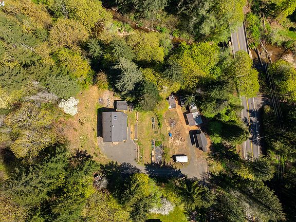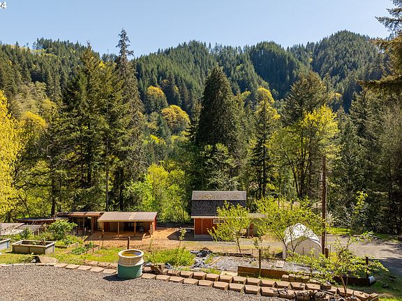 Escape to tranquility in this secluded 7.15-acre retreat in Mapleton, Oregon. A 4-bedroom, 2.5-bath sanctuary awaits, boasting newer luxury vinyl flooring and an open kitchen with ample countertop space. The convenience of a main floor primary bedroom is complemented by three additional bedrooms, a bath, and a spacious bonus room upstairs. Adjacent to the house, a 12x16 building with its own electric panel offers versatile use options.  Outside, the property boundary follows the serene flow of Knowles Creek, surrounded by flourishing plum, apple, and peach trees. Embrace self-sustainability with room for gardening, a chicken coop, and space to raise animals. Outbuildings provide generous storage, while a sprawling covered porch offers captivating views of the picturesque surroundings. Experience the perfect blend of comfort and natural beauty in this countryside haven.