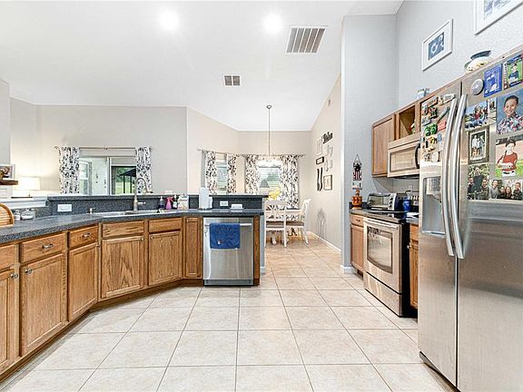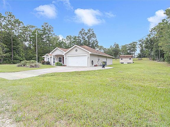 1.16 acres in Rolling Hills! This spacious home features 2215 living square feet with 4 bedrooms, 2 baths and a 2 car garage. Home is light and bright with new luxury vinyl plank floors and tile throughout; split plan, living room has wood burning fireplace, great kitchen space with stainless steel appliances, vaulted ceilings, spacious master bedroom, walk in closet, master bath with walk in shower, jacuzzi tub, dual sinks, inside laundry, covered lanai with additional open patio under a bird cage screen enclosure, new gutters and new well pump. Schedule your private tour today!