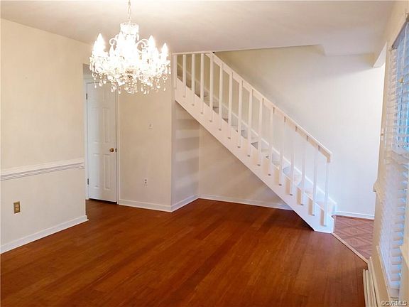 Looking for Easy, Maintenance Free, Social Living? That's what you'll find at Olde Gayton Townhouses! This move-in ready townhome is uniquely designed with THREE bedrooms / TWO AND A HALF bathrooms. NEW BAMBOO FLOORS throughout most of the 1st floor. The formal dining room features 2" blinds, chair railing and a beautiful crystal chandelier from the Czech Republic. The kitchen has a pass-through to the living room and has been updated with a stainless steel French door refrigerator, self-cleaning cooktop stove, LED hood, dishwasher, lighting and luxury vinyl tile flooring. The living room, with its cozy gas-lit direct vent fireplace, provides access through the sliding glass doors to the private fenced backyard which has a pergola and detached storage shed. At the top of the stairs you'll find the laundry closet, spacious primary bedroom with a walk-in closet and en suite, 2 roomy guest bedrooms, a guest bathroom, and, a floored pull down attic with an attic fan. Water heater and heat pump <2 yrs old. HOA responsible for the exterior maintenance. Covered front porch and private 1-car parking space. Conveniently located near Short Pump, I-64 and 288.