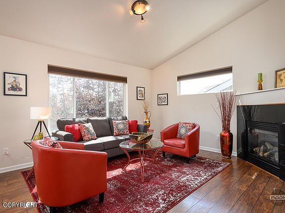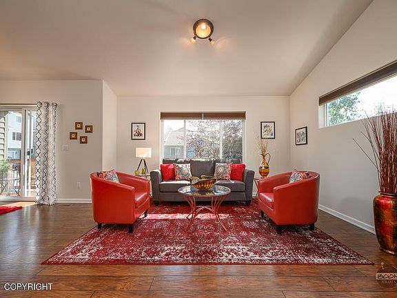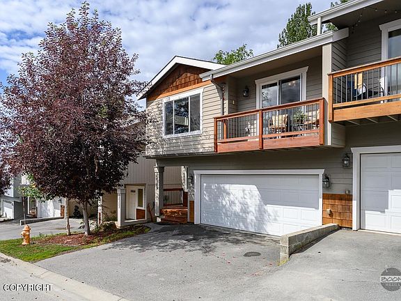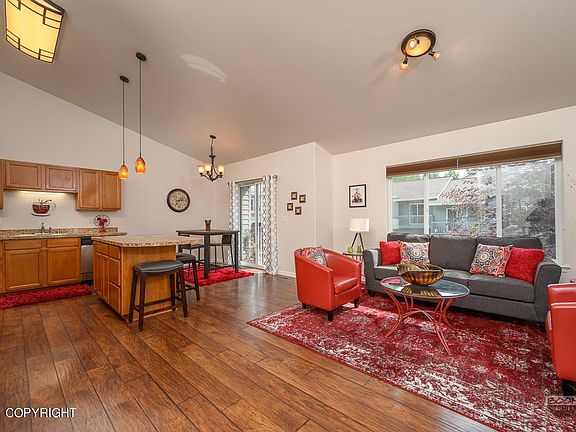Step into the heart of Eagle River & fall in love with this chic low maintenance townhome. A blend of curb appeal along with the warm inviting interior is sure to make you feel at home. Enjoy vaulted ceilings & sun filled southern facing kitchen, dining, living room and balcony. Features include great curb appeal with cedar shake siding and rock exterior accents, covered front porch and private...and private balcony, stainless appliances, large island with power, pendant lighting, bronze details, large pantry, Levolor blinds, laminate flooring, fresh paint, gas fireplace, spacious rooms, laundry up, professionally cleaned carpet, and more. Walking distance to grocery shopping, parks, restaurants. Partial mountain views from balcony and living room. Affordable dues include exterior & grounds maintenance, insurance, snow removal, water, sewer, refuse. Pets welcome!