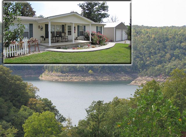 Gorgeous lakeview from front porch. 3BR, 2BA modular home on a permanent foundation. 2 car 30x27 detached garage and 2 other metal storage buildings. This home has a great screened in back porch overlooking 4 acres, spacious master suite, gas log FP and many other qualities. See all our listings at http://www.goLakeCumberland.com.