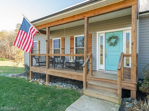 Welcome Home! Come see this charming 3 bedroom, 2 bathroom house with picturesque mountain views. Situated on over 3 acres, this home boasts a beautiful front porch/back deck, ideal for enjoying the stunning surroundings. Inside, you'll find the bright living area adds to the appeal, creating a welcoming space. This home offers a perfect blend of comfort and natural beauty. Perfect location - Within minutes of both Pilot Mt State Park as well as downtown King.