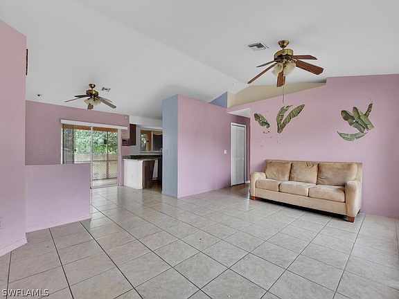 INVESTOR SPECIAL IN GREAT SWFL LOCATION! Priced to be sold AS-IS. Known damages (roof). This single family home features a great room layout, split bedroom floor plan, spacious kitchen, dining area, cathedral ceiling, laundry room w/ storage, 2-car garage, detached shed, dog run fenced-in area, screened lanai, open lanai, and large backyard w/ room for a pool. Situated in a non-gated community that has easy access to lots of shopping/dining options, public golf courses, public parks, SR 82, and having easy access into Fort Myers.