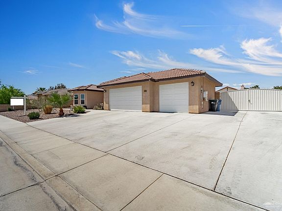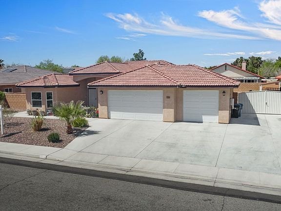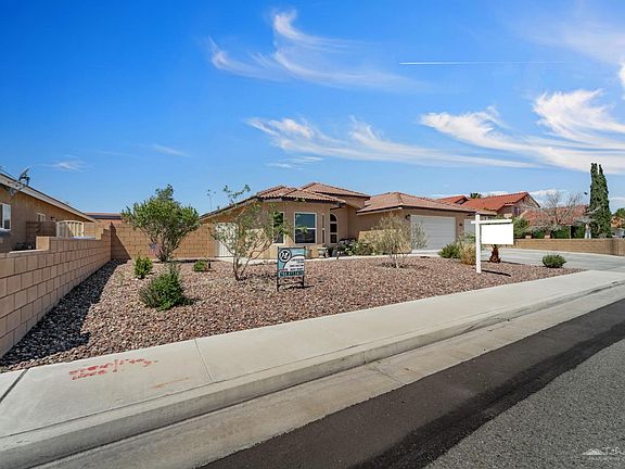 A Rare Single-Story Gem in North West Ridgecrest. This hard-to-find well-maintained home is located in The Estates. A gorgeous drive up gives way to a low maintenance rockscaped front yard and an oversized lot that features RV parking with double gates. Step into this split floorplan that features 2 separate primary bedrooms on opposite sides of the home, and 2 additional sizable bedrooms, and a 3rd full guest bathroom. Enjoy entertaining guests with your private dining room or delight your guests in your kitchen space that features a large breakfast bar area overlooking your family room. Meticulous attention to details is presented in this kitchen with granite counters tops and decorative custom backsplash with under cabinet lighting. Tile Flooring is featured through most of the home, which will help keep the temperature down on those hot summer days. The oversized main primary bedroom features ample natural light, and step into your ensuite where you can escape for your very own spa retreat. This bedroom also features private access to your backyard. If you love outdoor living space, you'll love hosting your summertime BBQ's in this spacious backyard with your covered patio, or practice your swing, or putt in this drought resistant backyard. You'll also appreciate the 2 oversized large sheds, which one of them is insulated to store extra stuff. The one thing about the desert is the summer evenings, & You'll never miss your desert sunsets in this backyard. Don't sweat high energy bills because this beauty has paid off solar. Any buyer who's looking for a 3 car garage on a premium sized lot will know that this may not last, and we hope this inspires you to act fast.