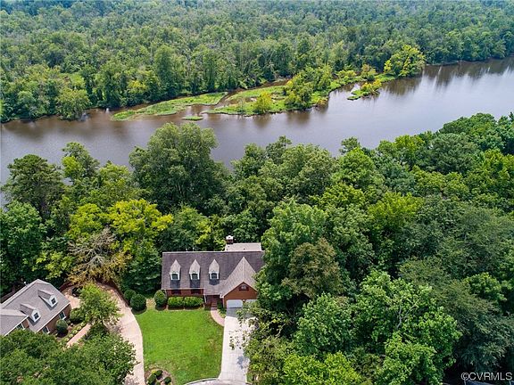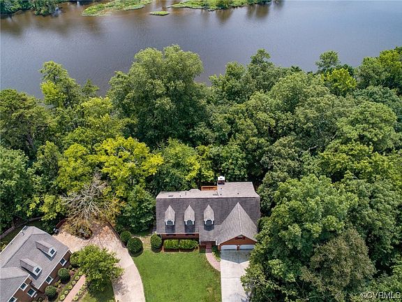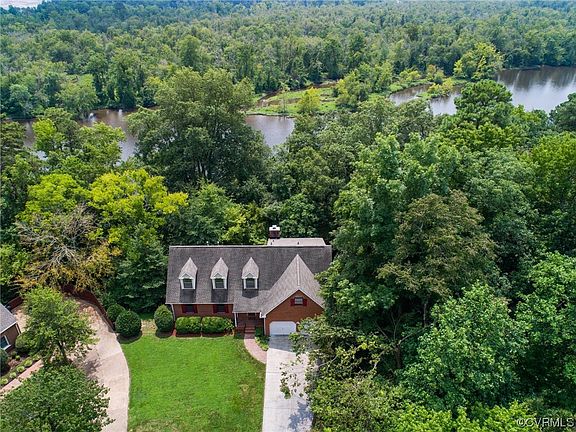 Awesome 5 bed, 4 full bath brick home w/ over 3,000 finished sqft located on a cul-de-sac lot in the back of a quiet subdivision overlooking the Appomattox River! Fresh paint & new carpet throughout. Gorgeous hardwood floors. Open floor plan excellent for entertaining & tons of natural light throughout. Updated eat-in kitchen outfitted w/ granite countertops & backsplash, stainless steel GE Profile appliances along w/ JennAir gas range. Dining area open to kitchen w/ bay window. Sunken den w/ beautiful brick, wood burning fireplace. Sun-drenched Florida room w/ paneling, tongue & groove ceiling along w/ back deck & garage access. 1st floor bedroom & full bath w/ built-ins & 2 closets would make a fabulous office or guest suite. Upstairs primary suite w/ 3 closets & a spacious full bath. 2nd floor also includes 2 more bedrooms & a full hall bath. Finished walkout basement w/ laundry, rec room & 5th bedroom w/ full bath. Detached storage shed w/ electricity. Oversized 2 car garage w/ storage, built-in & extra fridge. Beautiful views of surrounding woods & App River in the Fall. Convenient location & close proximity to schools, shopping, restaurants & interstate access. Do not miss!