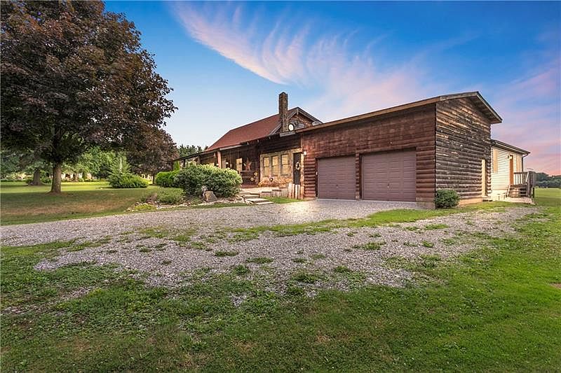 A rustic log home on two flat acres of land is waiting for you! Set in South Butler School District, this beautiful 4 bedroom, 3 bath home is what you've been looking for. Built with Northern White Pine logs, you'll love the open kitchen, Douglas Fir cathedral ceilings, stone work, cast iron wood stove and more. Relax on the large, covered front porch or entertain out back on the deck. A first-floor bed and bath offers convenience while another two bedrooms and a full bathroom are upstairs. There's also a full bed and bath with an additional kitchen located on the attached suite, allowing for a wonderful guest house and privacy. Welcome home at 1231 Cornplanter Rd!