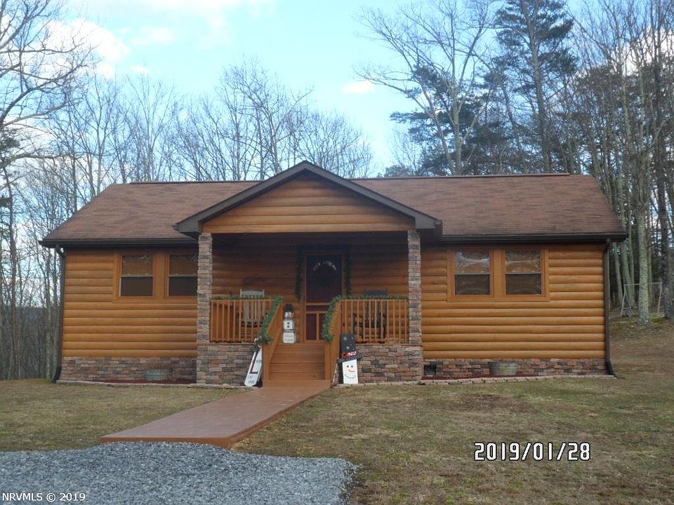 Private, Gated driveway Beautiful log-sided home on 20 wooded acres. High-end appliances convey, stone foundation. HP, HW, FP, double carport, lots of wildlife, good hunting.