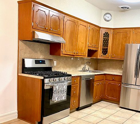 Nestled in the heart of the Flatlands area on a quiet tree-lined block you have a two bedroom apartment full of extras. The larger bedroom can accommodate a King sized bed while the smaller one can easily fit a full or even possibly a Queen. In the eat in kitchen you will find all new cabinets and new stainless steel appliances with enough room for a table and chairs. The bathroom is pristine with a full sized tub and a separate shower. Bonus areas include a front patio and a rear deck with access to a shared backyard. Multiple bus lines are a few blocks away. They include a 10 minute ride to the Flatbush Junction 2/5 train line or the express bus on Utica Ave. Target and other stores are all also minutes away. *Gas, Heat and hot water included *Parking spot available for an extra $100/mo fee *Good credit and income of 40x rent is a must