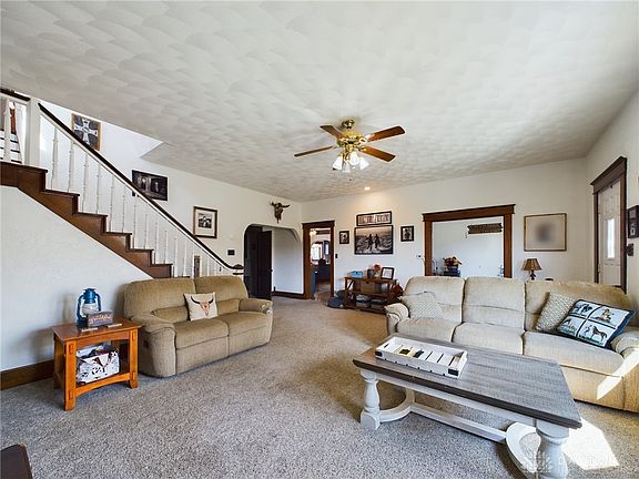 Horse Lovers Dream! This stunning property offers a spacious 4-bedroom, 2.5-bathroom, 2,480 square foot home with an oversized 2-car attached garage that includes extra storage space, all nestled on 20 acres of prime land. The home boasts a convenient first-floor bedroom and full bath, along with an L-shaped kitchen that opens to a deck—perfect for outdoor grilling. The kitchen flows into the dining room, which opens to the living room at the heart of the home. An enclosed front porch offers the perfect space for a home office. Upstairs, you'll find three generous bedrooms and another full bath.