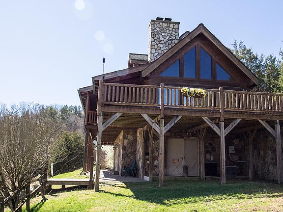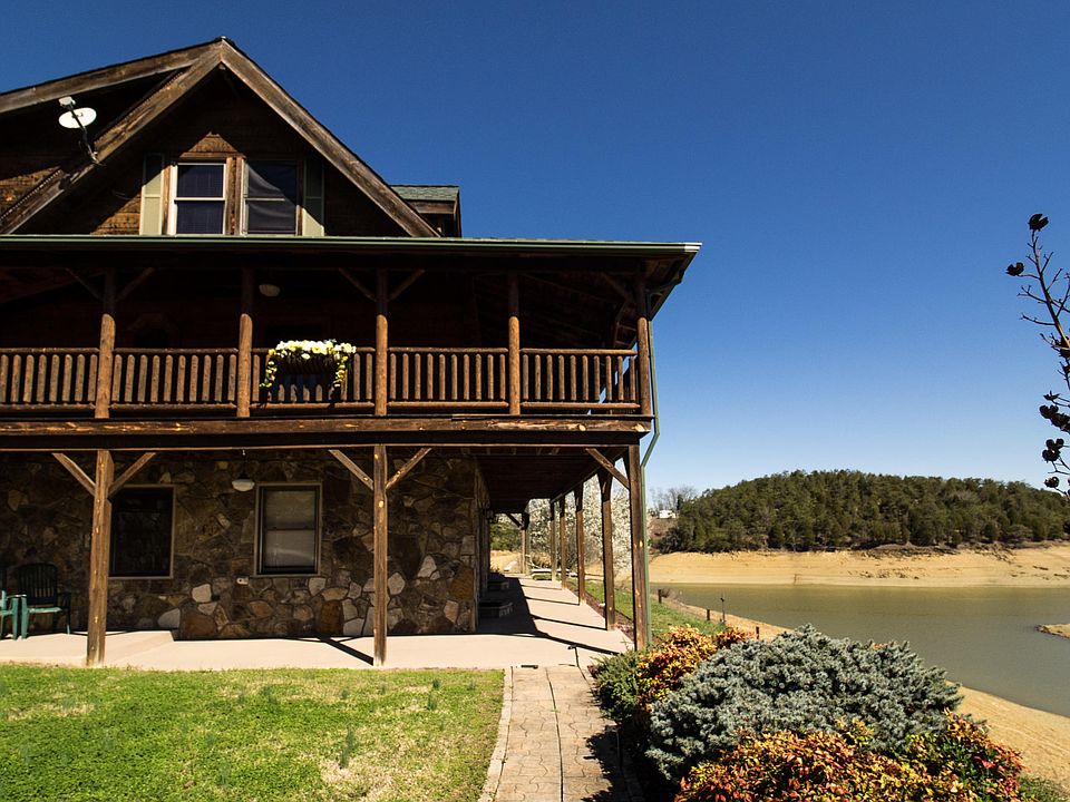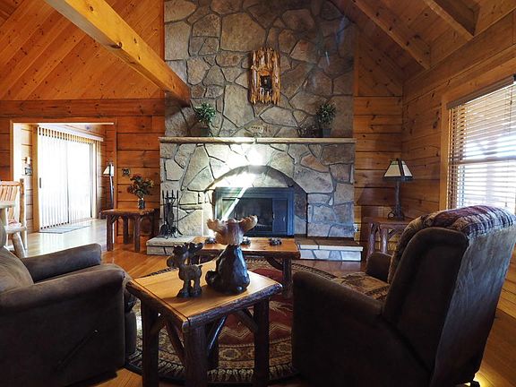 Gorgeous 2 story basement, furnished. Plus two small cabins in need of renovation. Great rental potential or private residence. Massive stone fireplace main level, smaller stone fireplace down. Two furnished kitchens. Wraparound porch. Pictures remain. Expensive wooden furniture. Two floating boat docks. This is one of those listings where I walked in and my mouth fell open. You will not be disappointed! Approximately $140,000 was spent on walls, landscaping, etc. following purchase., PLEASE REMOVE SHOES.